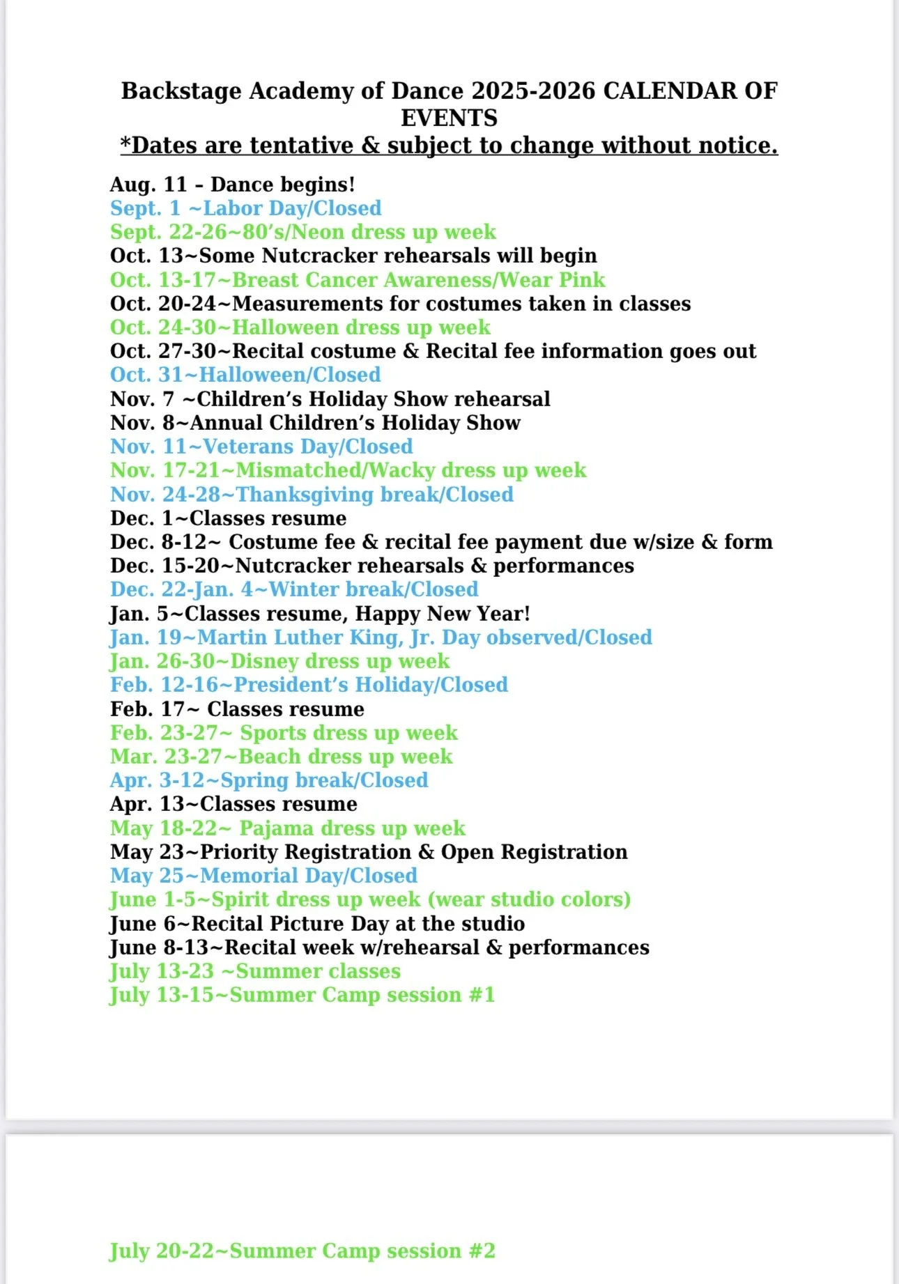 Welcome to Backstage Academy of Dance! Offering instruction in Jazz, Tap, Ballet, Pointe, Hip Hop, Parent and Me, Zumba & Latin Cardio! We cater to age 2-adult teaching beginning to advanced levels.
